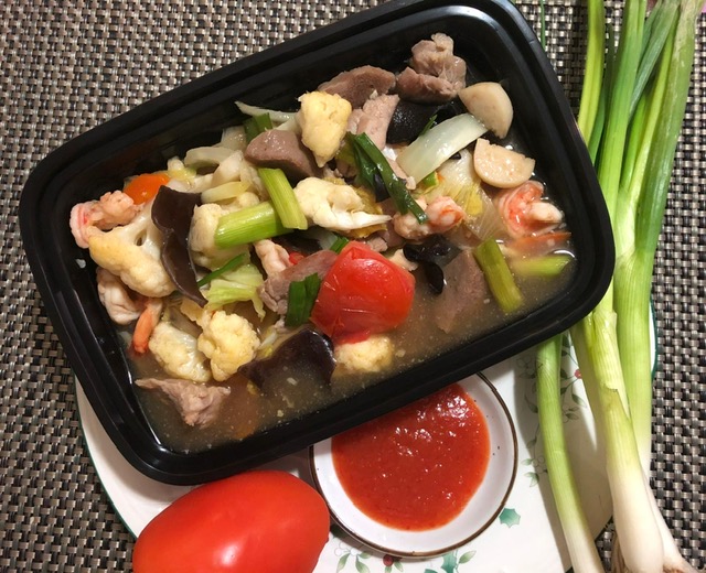 "description": "Indonesian style stir fry vegetables with combination pork meat, shrimp, fish ball, beef ball",