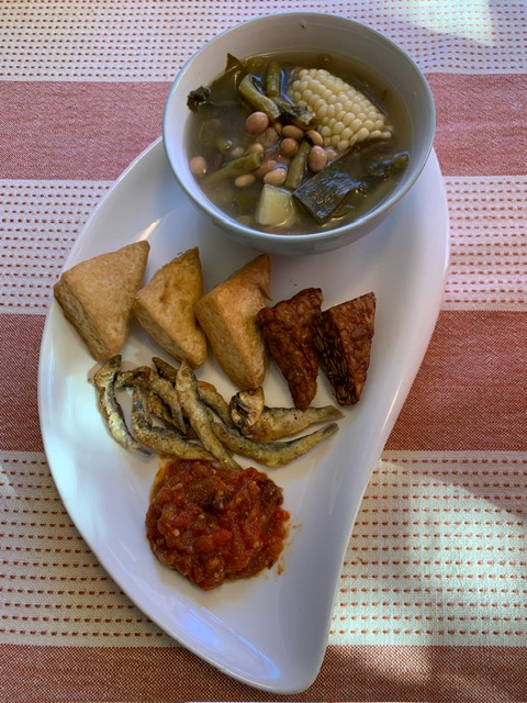 "description": "NEW Vegetarian Menu!\nSayur asem with fried tofu, tempeh, and salted fish",