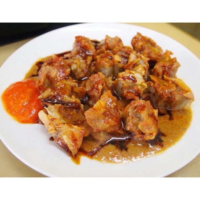 "description": "Chicken satay (halal meat) served with peanut sauce and pickles on the side",