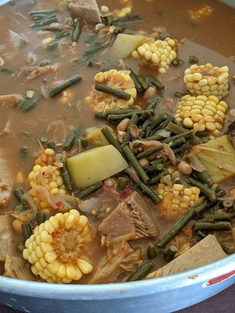 "description": "Vegetables Tamarind soup, sour, sweet, and lightly spicy.\nCorn, chayote, peanuts, cabbage, long bean/green bean",